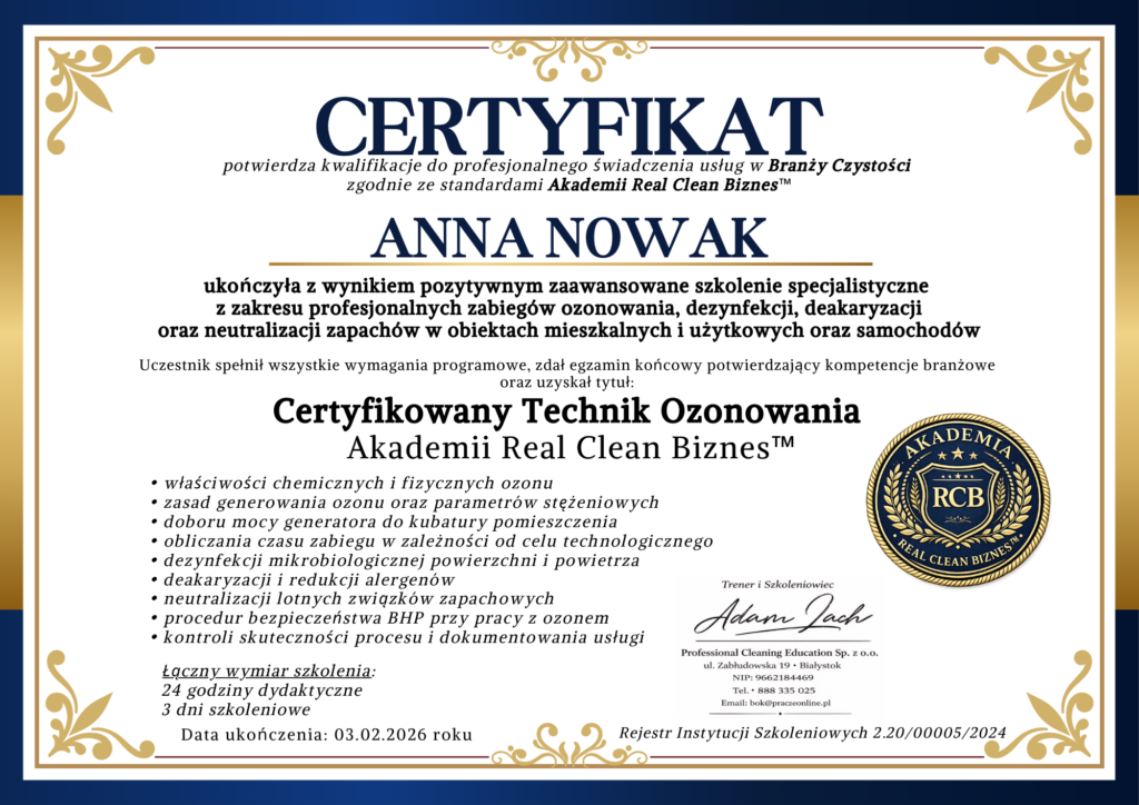 Każde szkolenie kończy się egzaminem online i automatycznym certyfikatem PL/ENG.